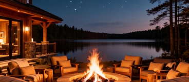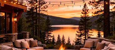 Panoramic Views Cozy Fireplace Modern Kitchen